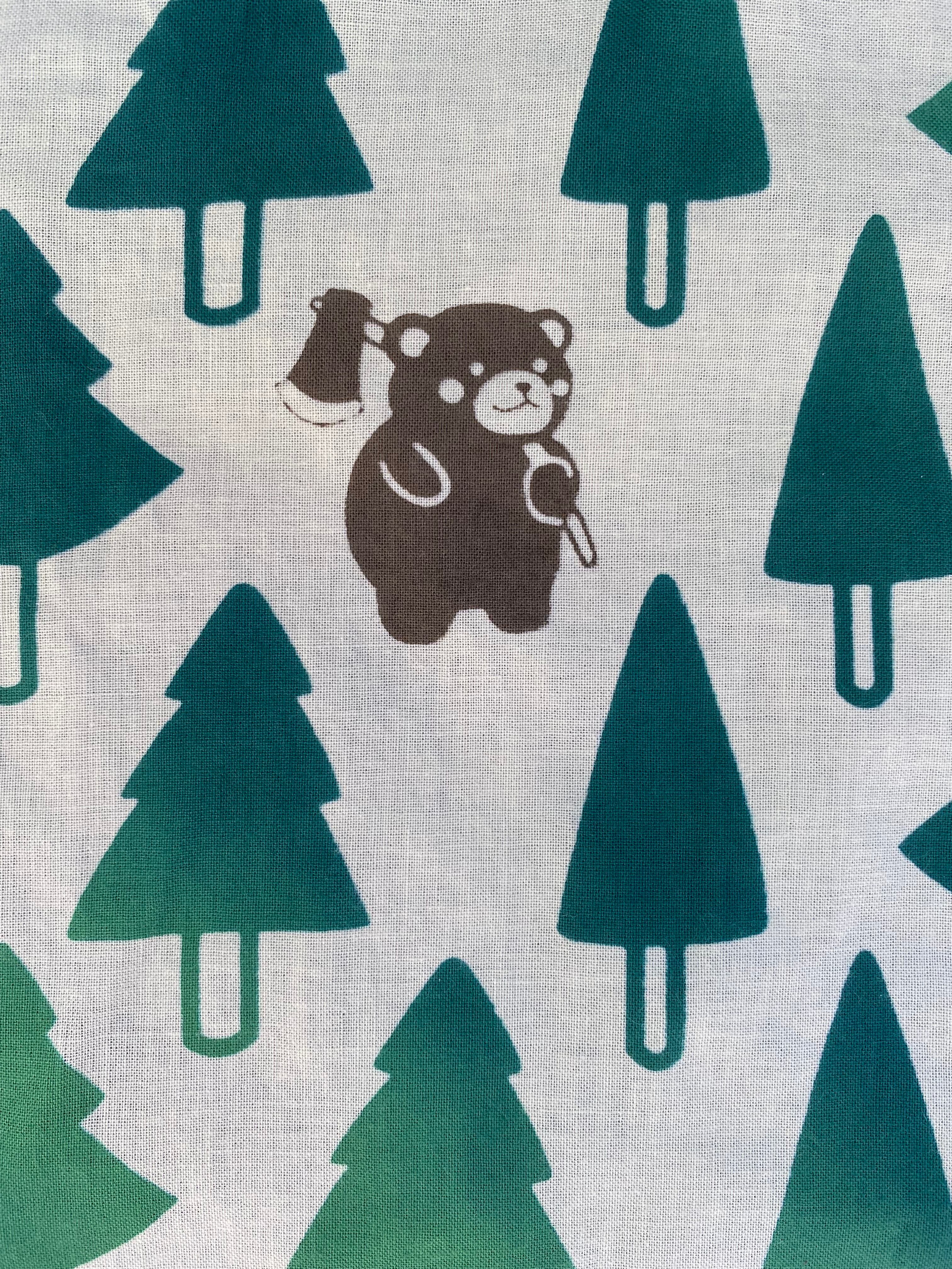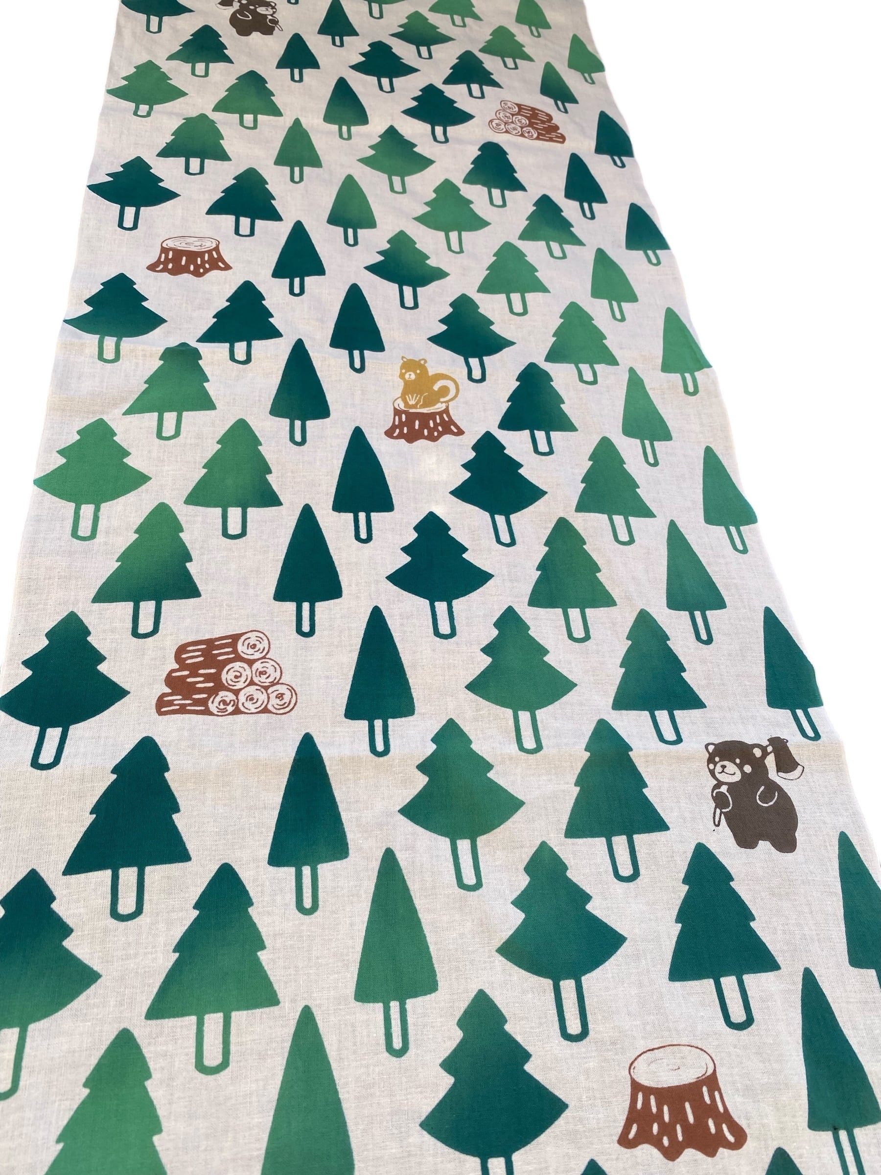 木をメインモチーフに森の中を思わせるかわいい手ぬぐいを作りました。