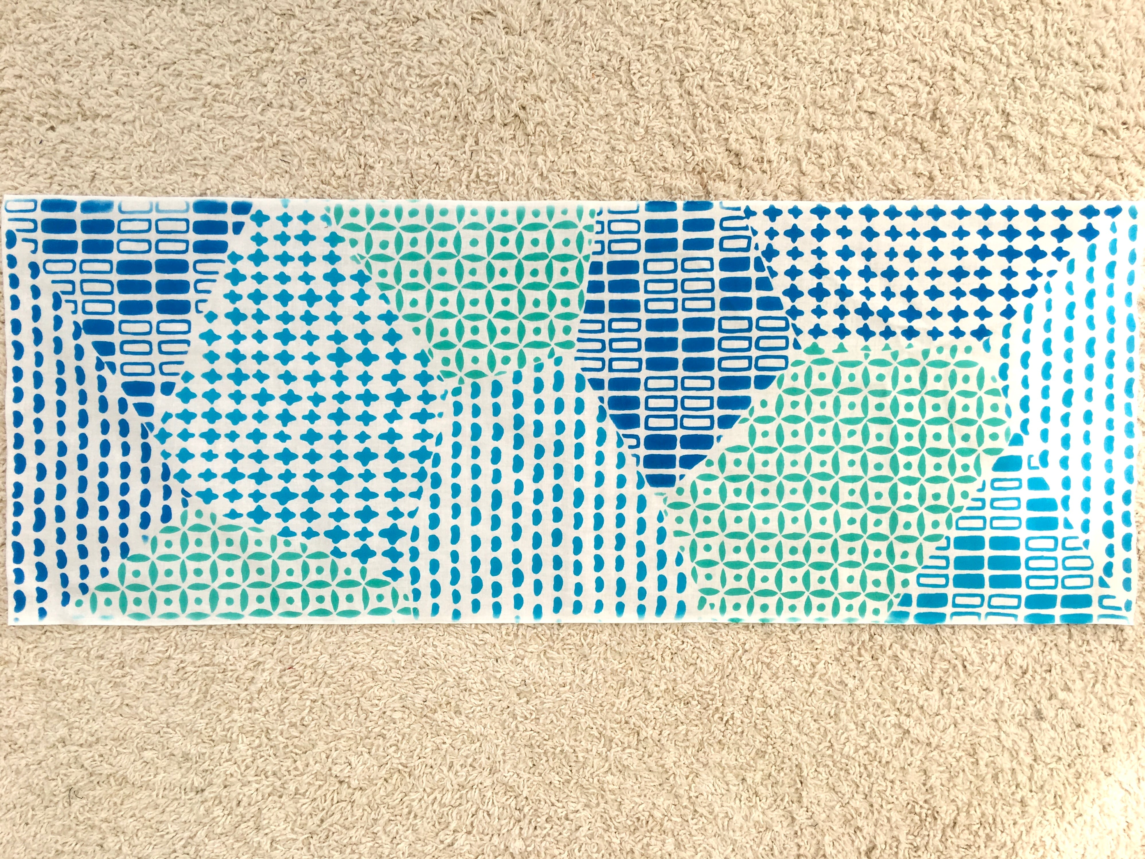 浴衣っぽい雰囲気な型紙なのでブルー系を基調にし、爽やかな印象になるように染め上げました。